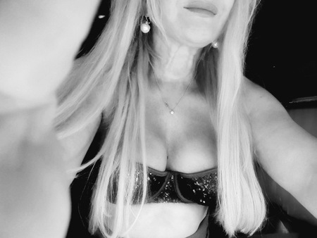 In heißen Dessous, vollbusig.