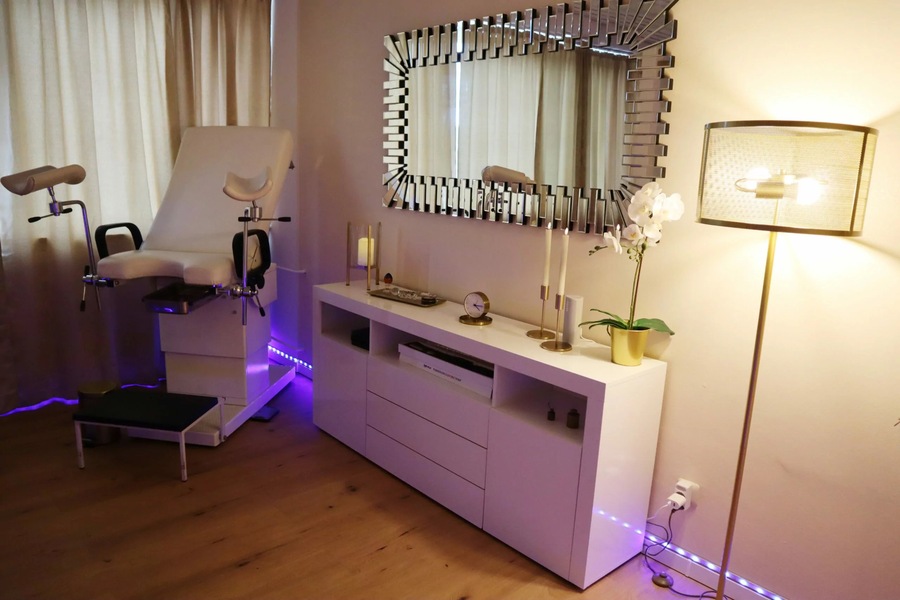 Voll ausgestatteter Gyn-Stuhl „Boomer“ – inkl. F***ma – von StyleFetish (im Raum „Romance“)