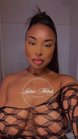 Ich bin Melody, 1,58 m, schwarzhaarig, mit einem kurvigen Latina-Body, weicher gebräunter Haut und süßem Dollface.