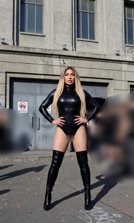 Ich bin eine rassige TS Fetisch, Lady mit besondere Extras ausgestattet in heissen Lack und Lederoutfit.